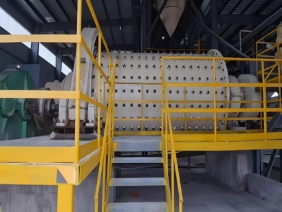 原矿石英石经过颚式破碎机粗碎破碎后,进入圆锥破碎机,使石英砂物料达到要求粒径后,进入球磨机进行研磨,为下一步的选矿作业做好准备。